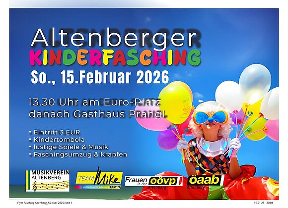 🎉🤡 Altenberger Kinderfasching 2026 🤡🎉 Verkleiden, lachen & gemeinsam feiern! Am Faschingssonntag, 15. Februar 2026 ist es wieder so weit: Der…
