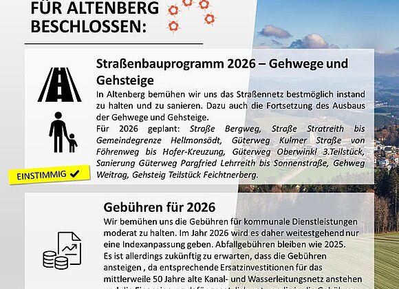 Heute wieder wichtige Beschlüsse im Altenberger Gemeinderat!
